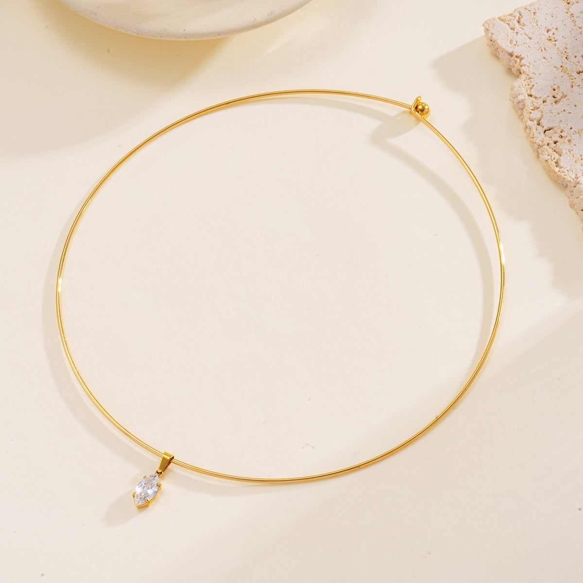 This timeless choker highlights a trio of refined charms: a delicate leaf, a sleek round cut, and a heart cut, each set with sparkling Zircon for a subtle touch of brilliance. Its lightweight slip-on design makes it easy to wear and perfect for any occasion—daily outfits, date nights, or thoughtful gifting.
